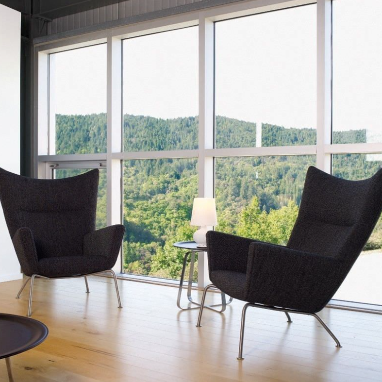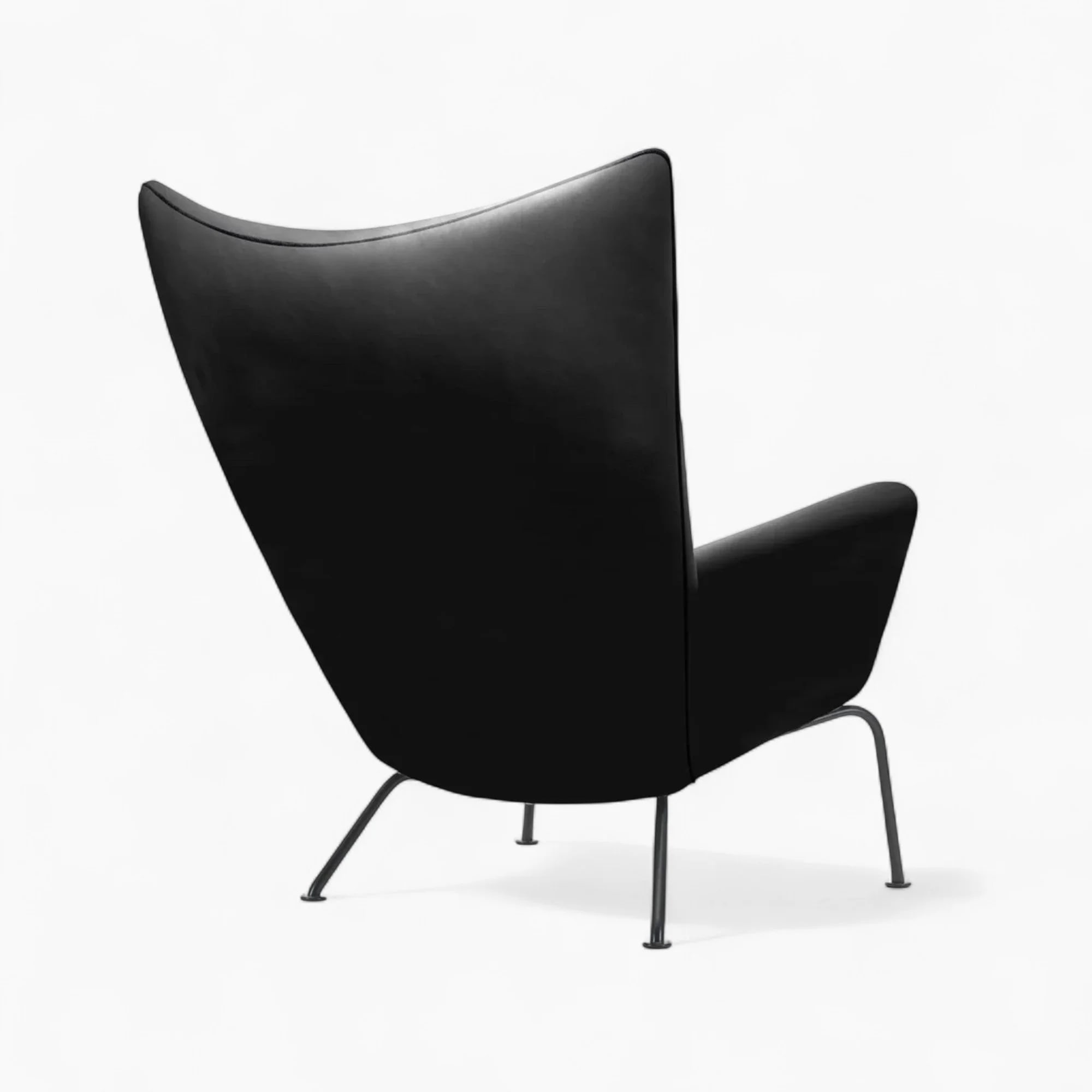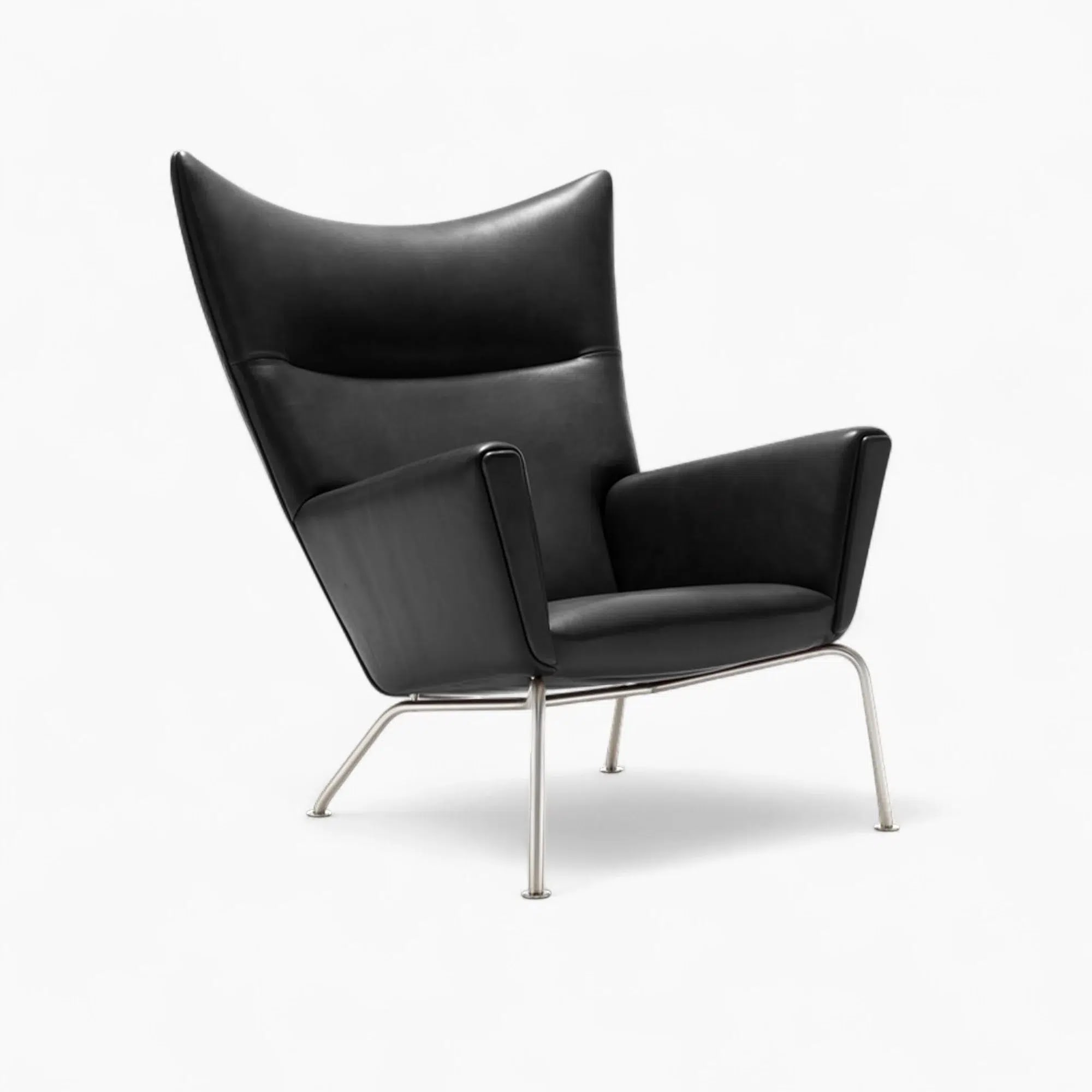 כיסא הכנף צ ‘ 445 הוא כורסת טרקלין מפוארת בגב גבוה המציגה את שליטתו של וגנר בצורה פיסולית ובנוחות ארגונומית.