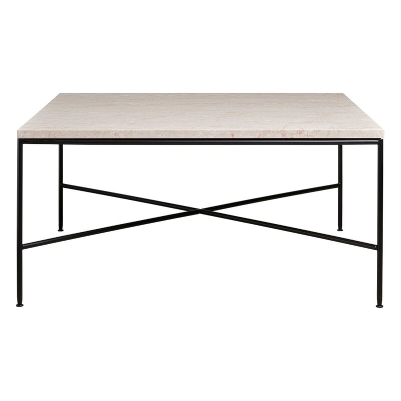 השילוב של חומרים—מסגרת פלדה דקה אך חזקה ושלבה עבה של שיש מושחז-מביא לשולחן קל מבחינה ויזואלית אך מהותי מבחינה חומרית.