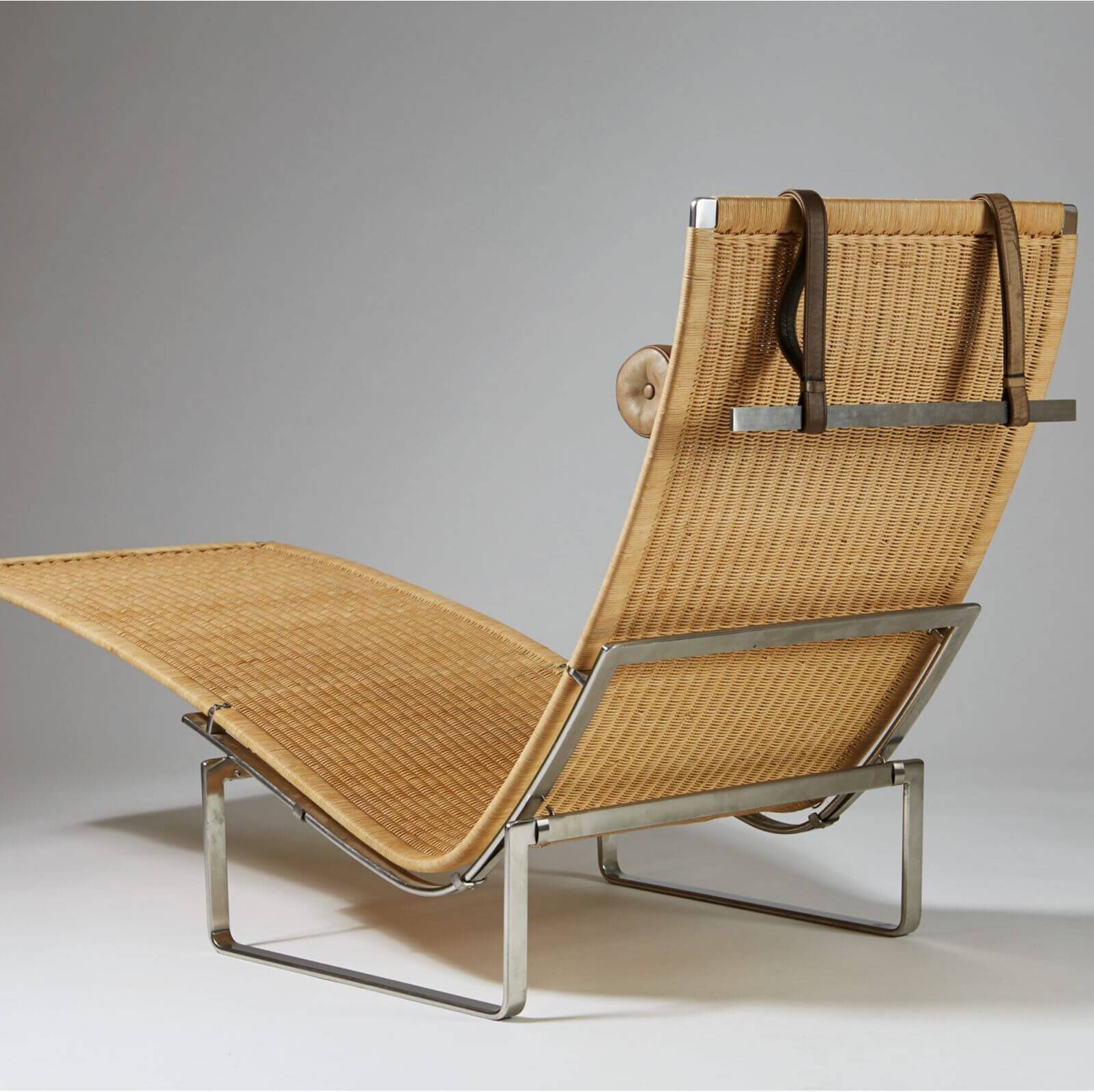 PK24 Chaise Lounge Wicker Seat with Leather Headrest